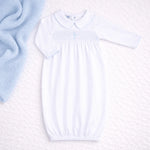 Blessed Blue Smocked Collared LS Gathered Gown