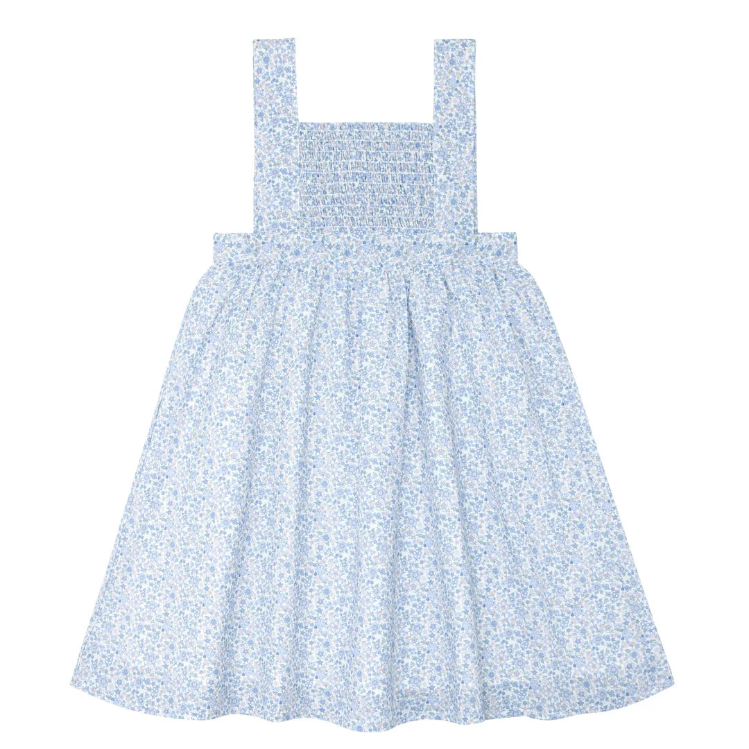 Girls Slate Floral Smocked Bib Dress