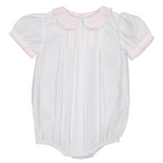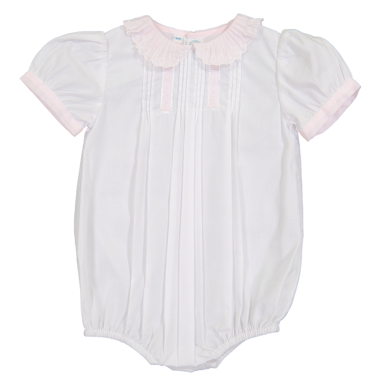 Girls Vintage Scalloped Collar Romper White/ Pink